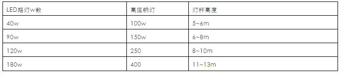 LED路燈功率、燈桿高度、道路寬度的關系